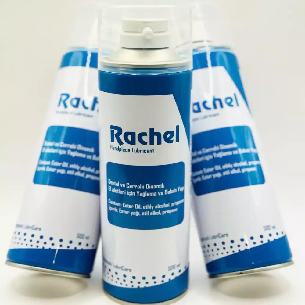 Rachel Aeratör Bakım Yağı Spreyi, diş hekimliği uygulamalarında kullanılan aeratör ve mikromotor başlıklarının düzenli bakımını sağlamak için özel olarak geliştirilmiş yüksek performanslı bir üründür. El aletlerinin ömrünü uzatırken, sorunsuz ve hijyenik bir kullanım sunar.