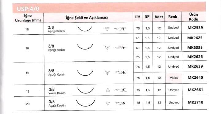- İplik Tipi: Sentetik, emilebilir, monofilament