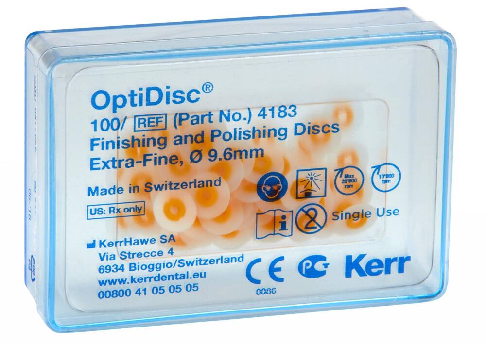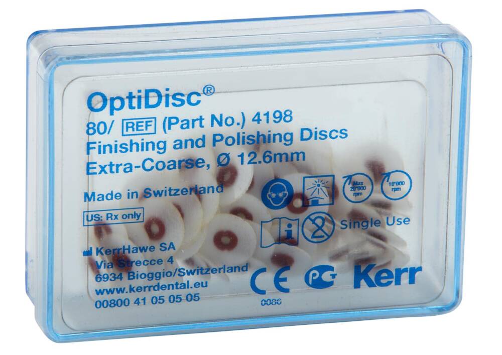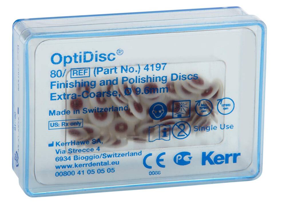 Kerr Optidisc, kompozit ve diğer restoratif materyallerin bitirme ve polisaj işlemleri için özel olarak geliştirilmiş yüksek kaliteli disklerdir.