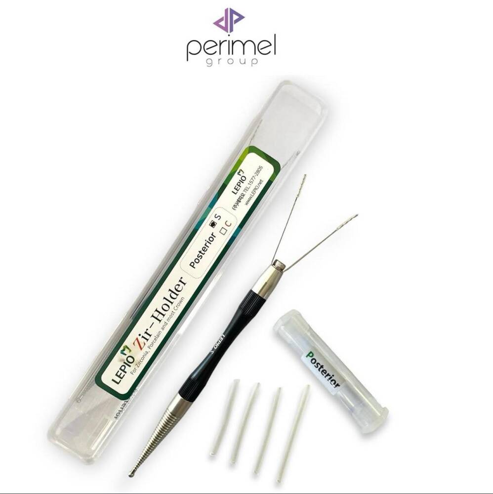 Lepio Zir-Holder Zirkon Ve Porselen Tutma El Aleti , anterior bölgedeki zirkonya, porselen ve metal seramik kronların hassas taşlama ve cilalama işlemleri sırasında güvenli ve nazik bir tutuş sağlamak üzere tasarlanmış özel bir dental tutucudur. İnce uç yapısı ve silikon kaplaması sayesinde restorasyon yüzeylerinde çizik veya hasar oluşumunu önler.